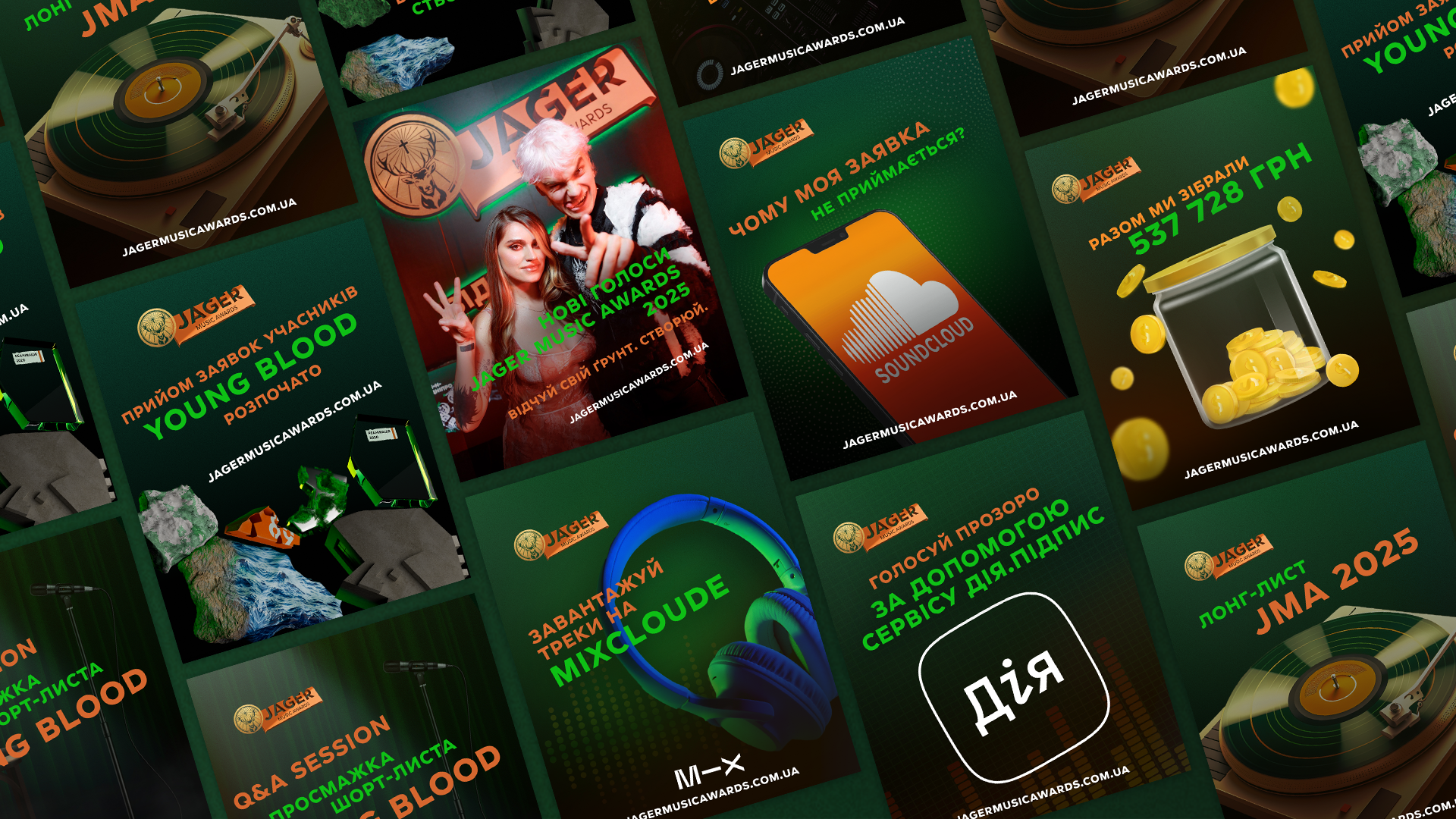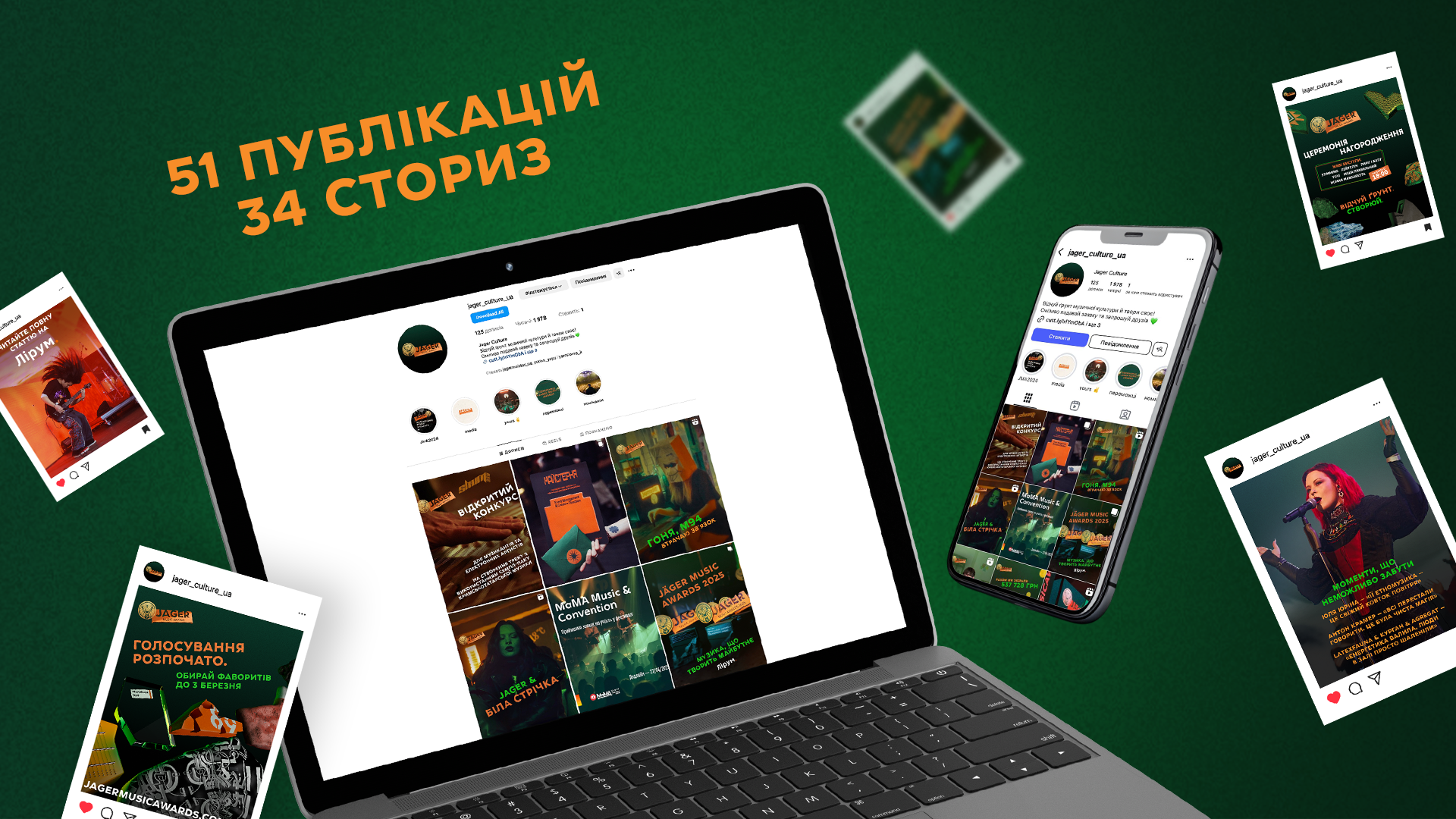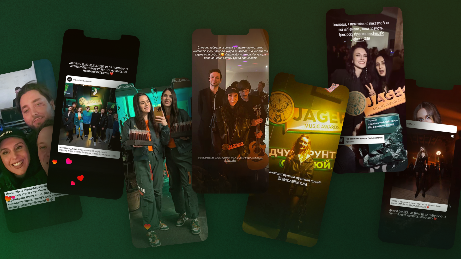 Jäger Music Awards — премія, яка вже шостий рік поспіль підтримує та популяризує сучасну українську музичну культуру. Її мета — надати потужний стимул для розвитку нових талантів, які творять майбутнє української альтернативної сцени. Вона не лише відзначає досягнення артистів, але й активно підтримує розвиток індустрії. Цього року наша команда була цифровим партнером премії в соціальних мережах, зокрема в Instagram, де ми виконували роль медіаторів та промоутерів.