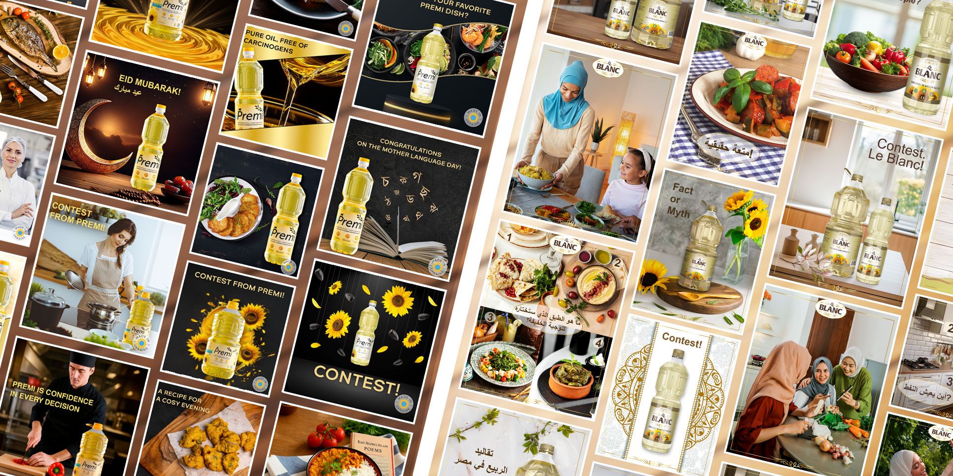 До нас звернувся провідний виробник олії Kernel із чітким викликом: розробити та реалізувати ефективні SMM-кампанії для брендів Premi та LeBlanc у різних країнах світу — зокрема в Омані, Єгипті та Бангладеші. Головним завданням стало адаптувати глобальні бренди до локального контексту, враховуючи культурні коди, естетику й цінності цільової аудиторії. Нашою метою було сформувати впізнаваність, створити позитивний імідж і завоювати довіру місцевих користувачів у Facebook та Instagram.