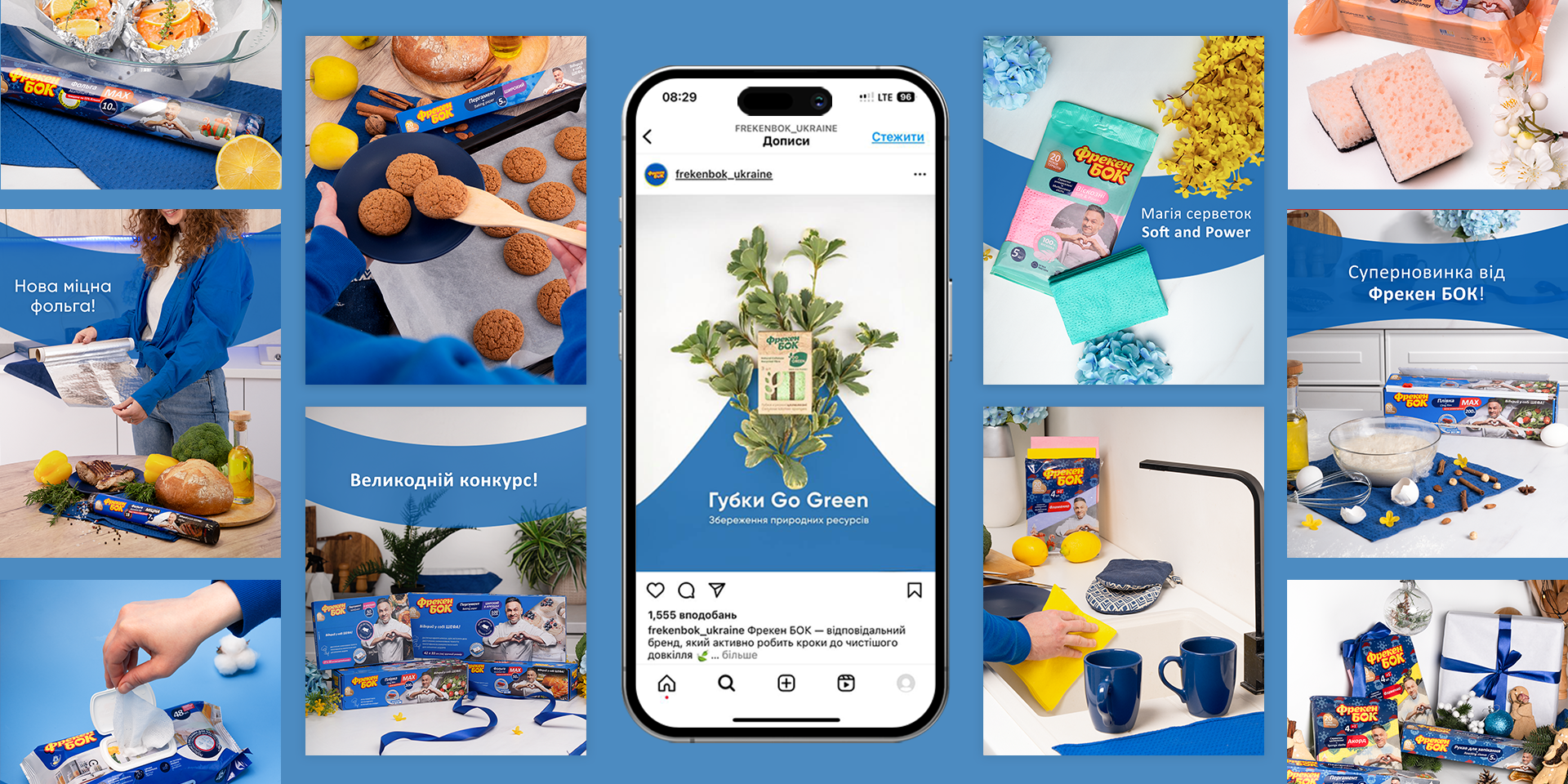 Також ми створюємо крафтові іміджеві фото — інтегруємо продукт у звичайне життя споживачів. На фото показуємо маленькі історії використання продуктів Фрекен БОК: як то готування смачних страв у фользі, зручне зберігання речей у пакетах-слайдерах або прибирання з серветками.