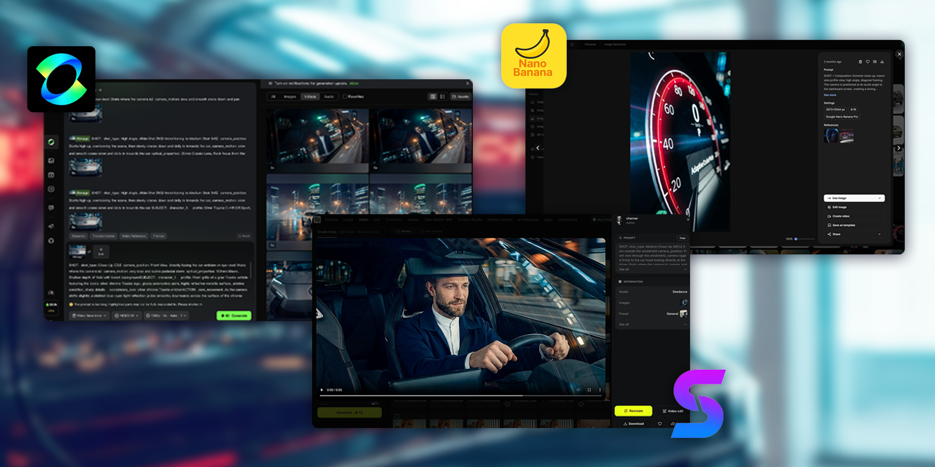 З технічної точки зору проєкт був побудований як гібридний пайплайн із кількох AI-інструментів, кожен з яких відповідав за свою частину задачі. Для генерації фотостатики використовували Nana Banana Pro, оскільки саме ця модель дала найбільш стабільну «кіношну» картинку та коректно працювала з референсами салону, кузова й логотипу. Критично важливою була якість широких планів — автомобіль мав виглядати не як згенерований обʼєкт, а як повноцінний рекламний герой кадру.