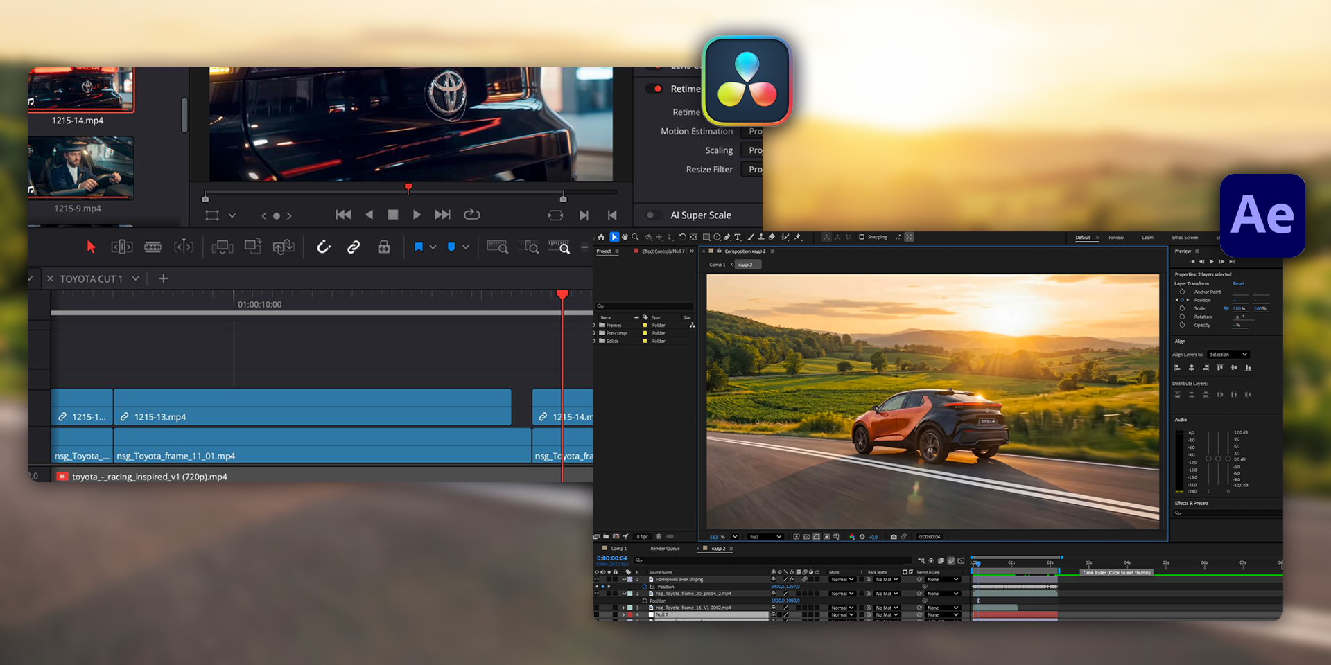 Фінальний монтаж, візуальні ефекти та легкий колоркор виконували в DaVinci Resolve та After Effects. Саме на цьому етапі відбувалась ключова інженерна частина — ми вручну трекали інтерфейсні елементи, логотип і критичні деталі автомобіля, буквально «прибиваючи» їх до кадру. AI все ще має тенденцію мутувати дрібні обʼєкти, особливо на широких планах, тому без класичного композитингу та ручного контролю цей ролик просто не міг би існувати у форматі брендової реклами.