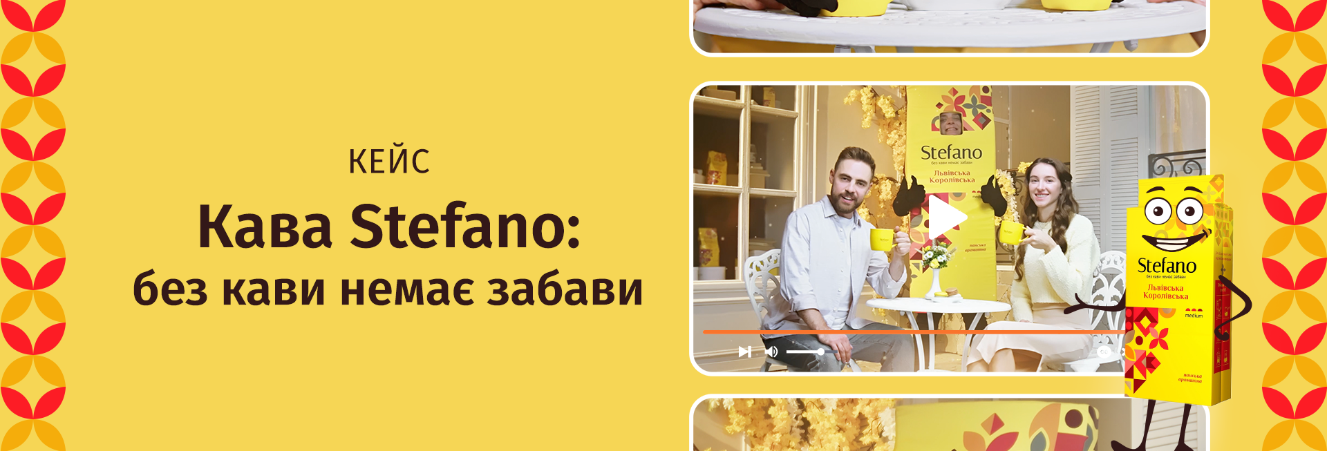 Ринок кави в Україні насичений і конкурентний, але ми побачили можливість створити щось особливе з брендом Stefano від Мономах. Наш підхід полягав не просто в ідеї запуску нового продукту, а у формуванні цілої філософії, яка б резонувала з аудиторією на емоційному рівні. В умовах, коли країна переживає складні часи, ми вирішили зробити ставку на гумор та легкість, даруючи людям моменти радості та відпочинку від щоденних турбот. Stefano мав стати не просто кавою, а символом позитиву та дружнього спілкування, якого так не вистачає сучасному суспільству.
