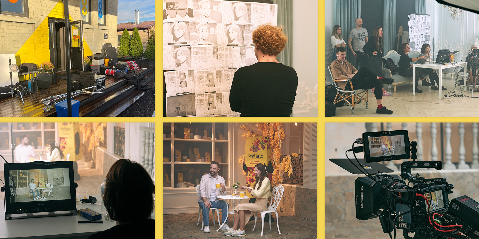 Для оживлення бренд-персони ми створили спеціальний ростовий костюм героя кави. Це дозволило використовувати персонажа Stefano не лише в онлайн-комунікації, але й у офлайн-активностях, створюючи цілісний образ бренду.Оформлення студії