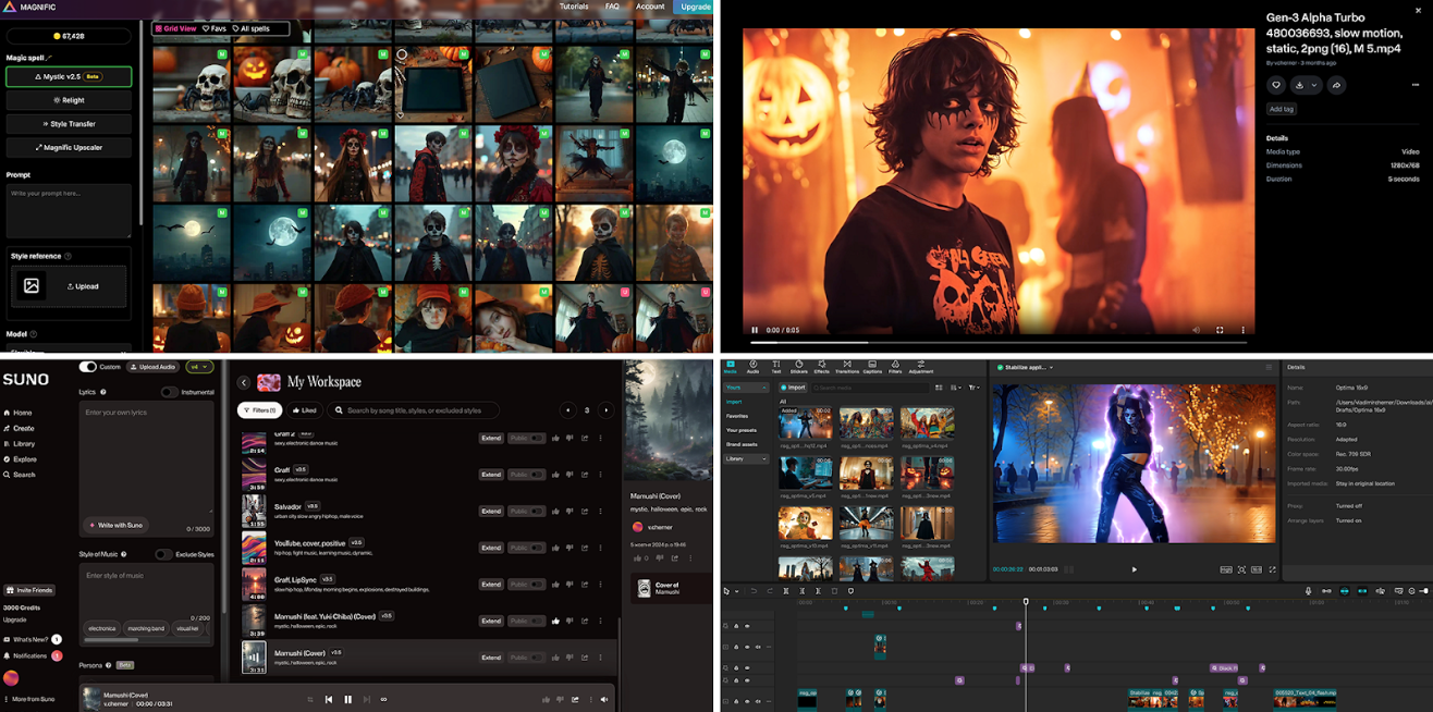 Першим етапом стала розробка реалістичних персонажів, використовуючи Magnific Realism. Ця технологія дозволила створити моделі з увагою до найдрібніших деталей: текстура шкіри, вирази обличчя, освітлення та навіть складки одягу. Кожен персонаж відповідав тематиці Геловіну — вампіри, відьми та інші класичні образи гармонійно вписувалися в концепцію відео. Усі деталі, від колірної гами костюмів до антуражу, створювали цілісний візуальний стиль.