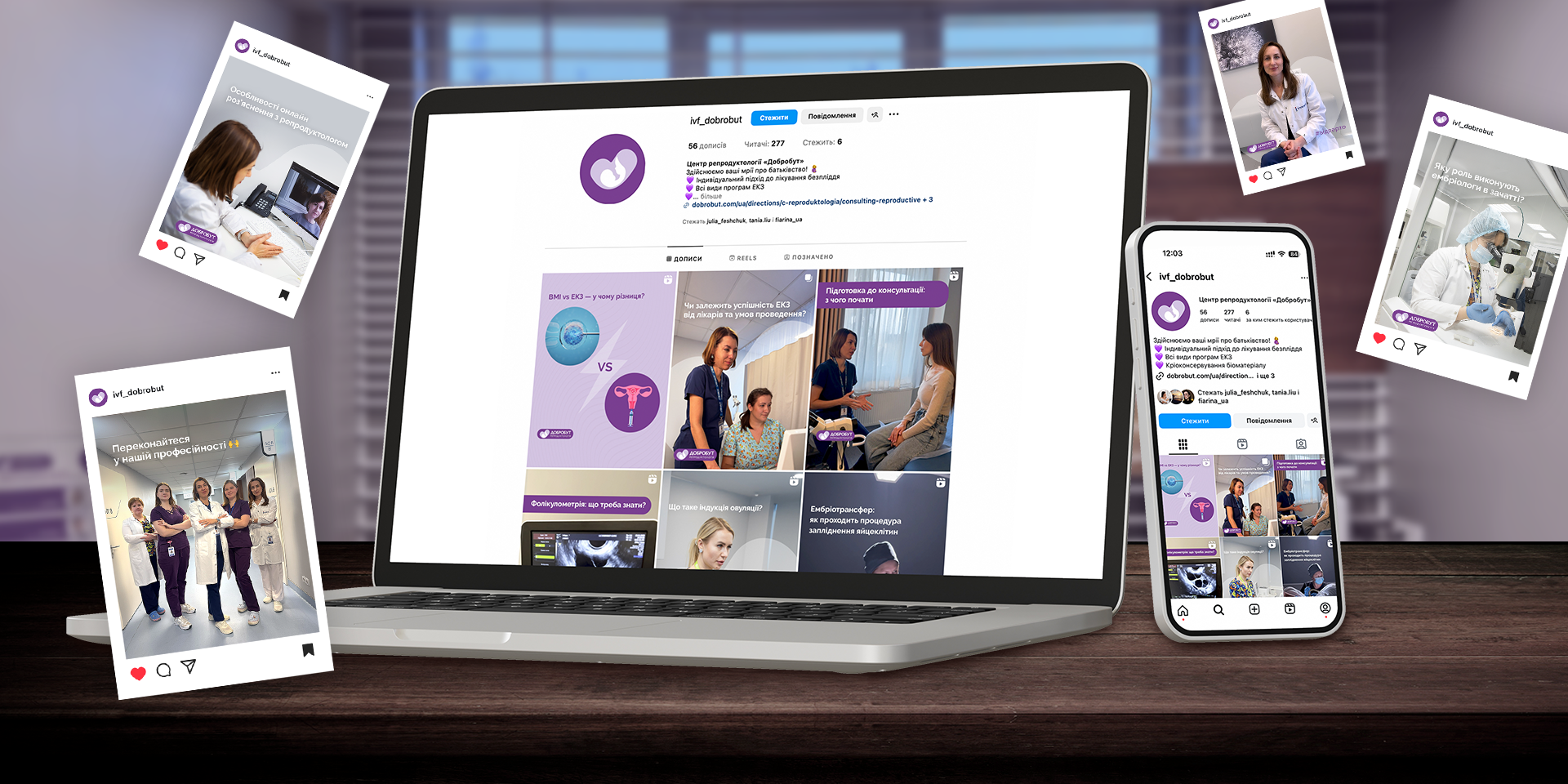 Розроблена нами контент-стратегія допомогла центру репродуктології «Добробут» сформувати чіткий, позитивний і надійний імідж. Аудиторія отримала простір для відкритого обговорення складних питань і доступу до професійних консультацій. Завдяки продуманому підходу до контенту та дизайну, соцмережі центру активно розвиваються, збільшуючи охоплення та залучаючи нових потенційних пацієнтів.