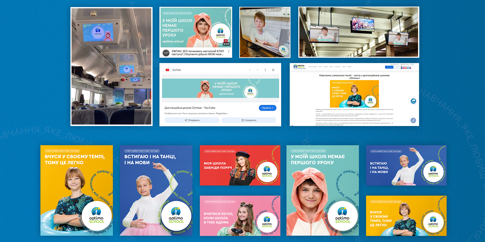 Початком кампанії стала яскрава фотосесія з дітьми-моделями. Ці фото лягли в основу банерів та загальної айдентики бренду. На їх базі ми створили сценарії та зняли відеоролики, які підкреслювали головну перевагу Optima School — відсутність обмежень у навчанні завдяки диджиталізації.