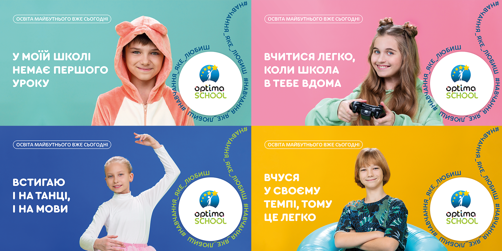 У центрі нашої кампанії слоган «Навчання, яке любиш». Кожен ролик розкривав окрему перевагу Optima School. Ми показували, як цифрова освіта звільняє дітей від обмежень, додає впевненості та мотивації. А головна мета — створити образ оптиміста з Optima School: самостійного учня, який усе встигає.