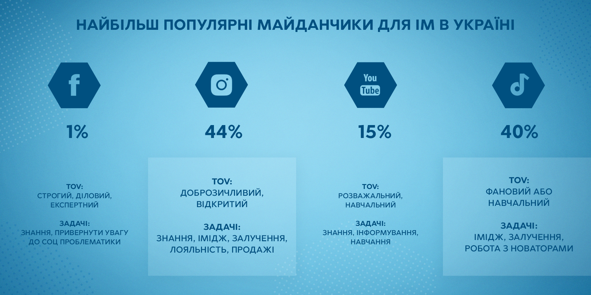 При виборі соціальних мереж для публікацій ми знову керувались внутрішньою статистикою та метою рекламної кампанії. Враховуючи наші стратегічні цілі, основними платформами стали TikTok для розширення охоплення та Instagram для підтримки іміджу та залучення аудиторії.