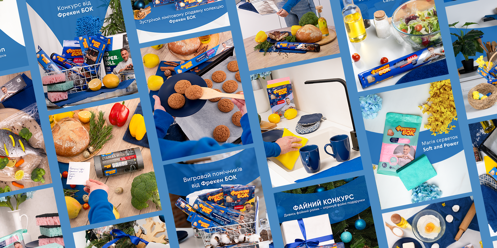 Також ми створюємо крафтові іміджеві фото — інтегруємо продукт у звичайне життя споживачів. На фото показуємо маленькі історії використання продуктів Фрекен БОК: як то готування смачних страв у фользі, зручне зберігання речей у пакетах-слайдерах або прибирання з серветками.