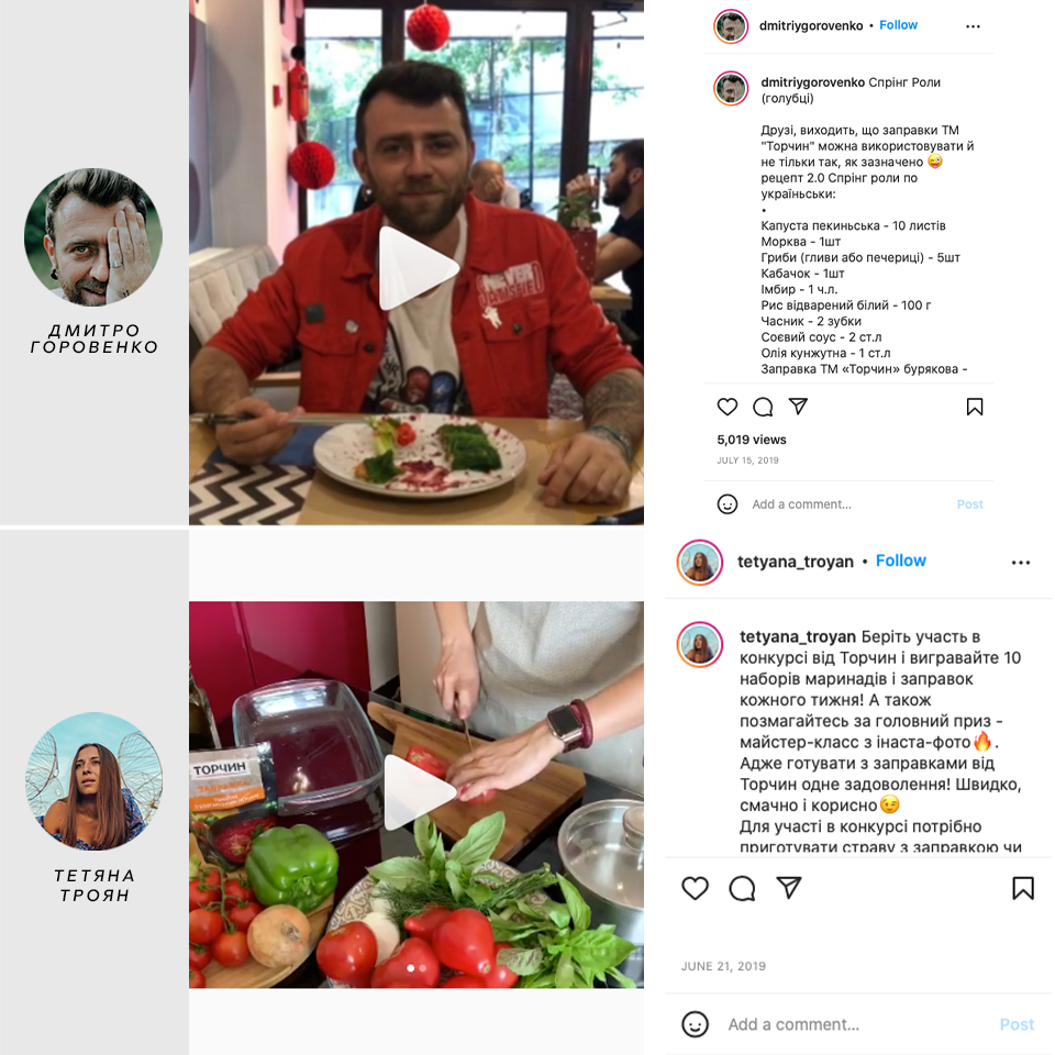 В кінці кожного відео блогери запрошували користувачів приготувати їжу з «Торчин», розмістивши фото своїх кулінарних шедеврів в особистих профілях з хештегом #torchynbest.
