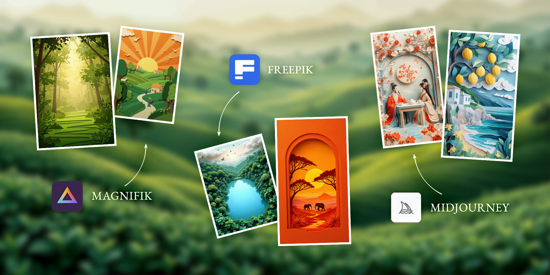 Створення цього неймовірного візуального всесвіту вимагає майстерності та технологічної винахідливості. Ми використовуємо Midjourney для досягнення найвищої художньої якості та деталізації паперового стилю. Freepik допомагає будувати гармонійні композиції, а Magnific Fluid надає сценам виразності та збалансованості.