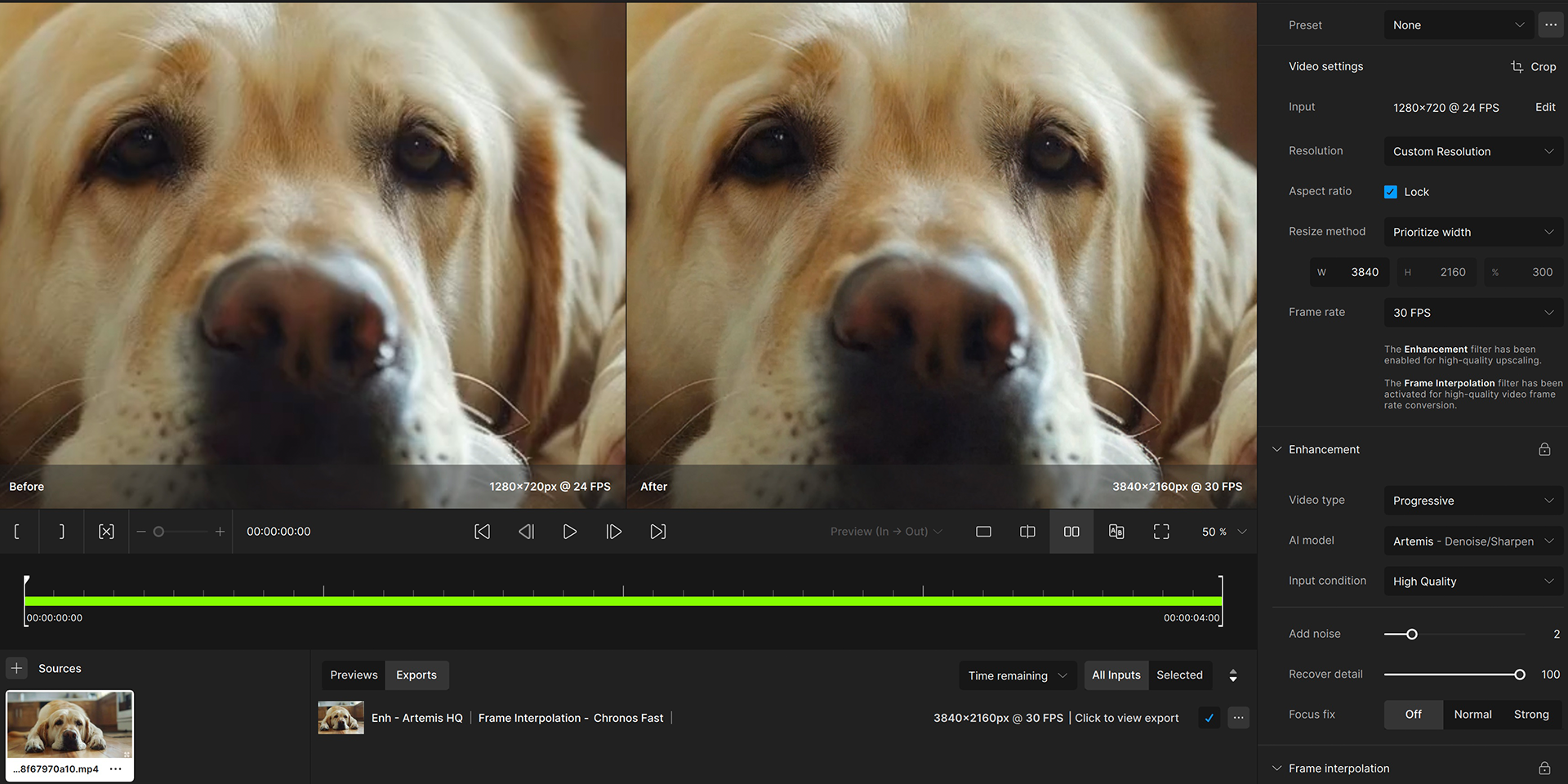 Крім того, кожне відео ми покращували за допомогою нейромережі Topaz Video AI. Це дозволило нам збільшити роздільну здатність відео