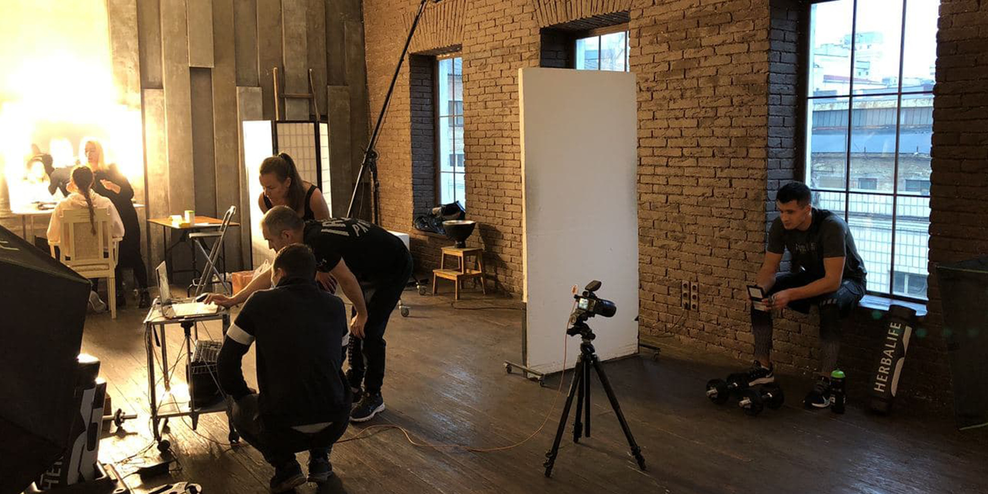 В другому за допомогою циклорами відзнімали фото одягу для каталогу на сайті Herbalife Nutrition.